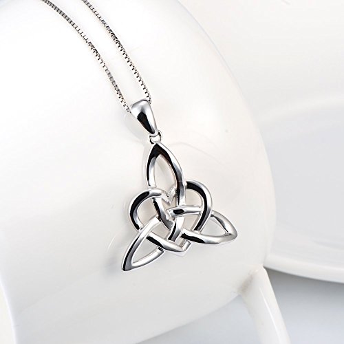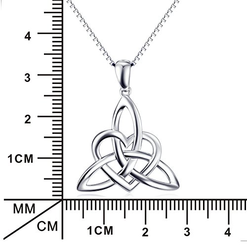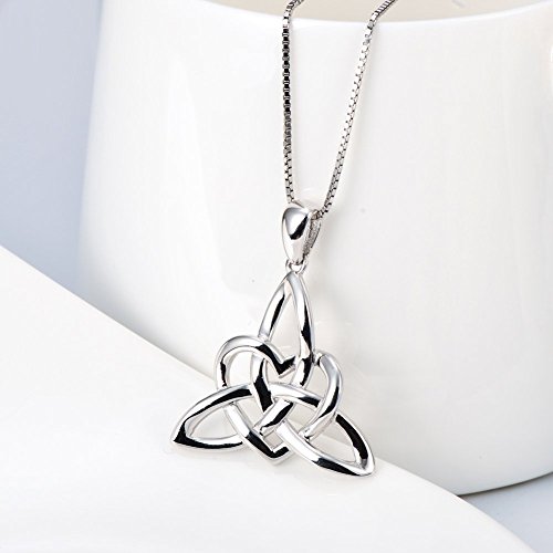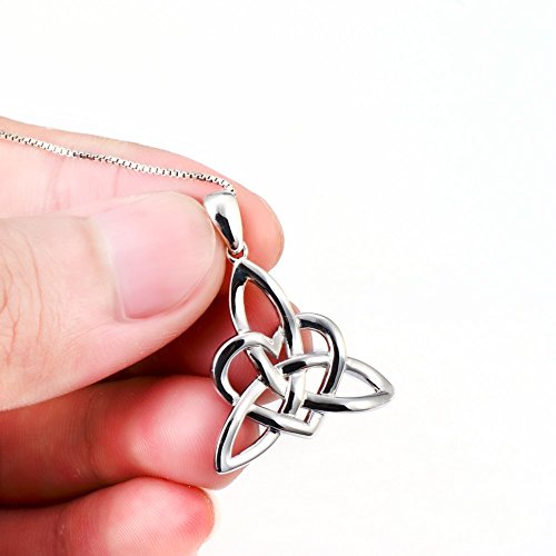 Sterling silver necklace featuring Heart-shaped pendant decorated with elaborate Celtic knot design
