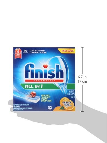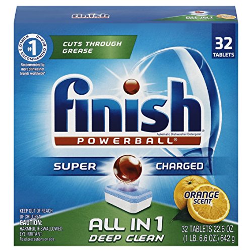 FINISH ALL IN 1 POWERBALL, 32 TABLETS, SUPER CHARGED AUTOMATIC DISHWASHER DETERGENT, ORANGE SCENT