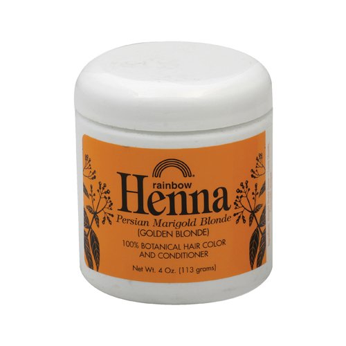 Studio : Rainbow Research Publisher : Rainbow Research Binding : Misc. Product Description Rainbow Research Henna Hair Color and Conditioner Persian Marigold Blonde Golden Blonde Description: 100% Botanical Hair Color and Conditioner Color Lasts 4-6 Weeks Rainbow Henna Rainbow Henna has no additives, chemicals, or pesticides. Rainbow Henna coats each hair shaft with color. Blends naturally. Fades gradually. Lasts 4-6 weeks. Smoothes and seals the hair's cuticle for greater shine and body. Our custom-tailored recipes can be used for special effects, covering grey, and improving texture.