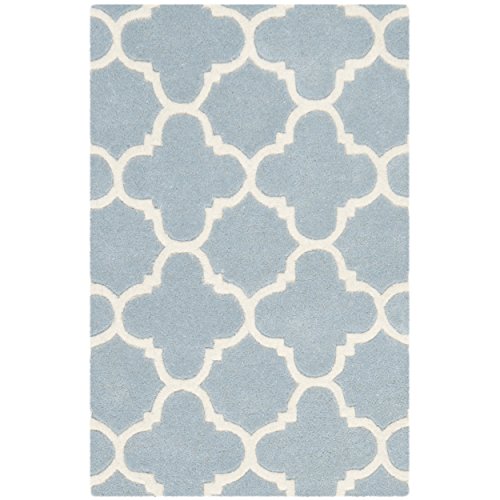 SAFAVIEH CHATHAM COLLECTION CHT717B HANDMADE BLUE AND IVORY WOOL AREA RUG, 2 FEET BY 3 FEET (2' X 3')