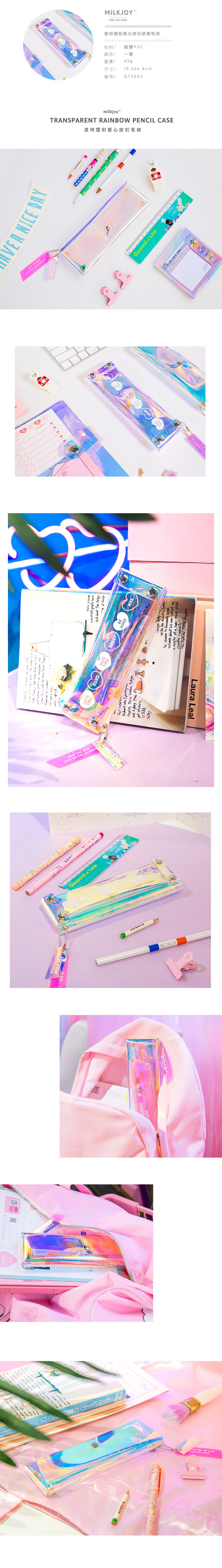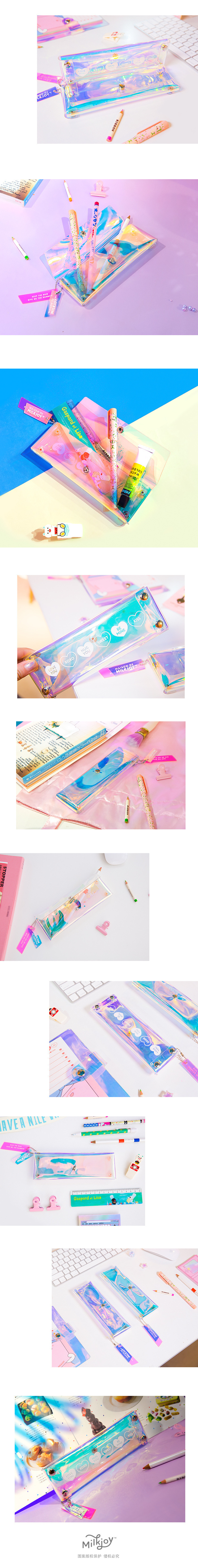 Milkjoyレーザー折りたたみスナップペンバッグ新鮮な文学透明鉛筆バッグレーザーカラフルなペンケース