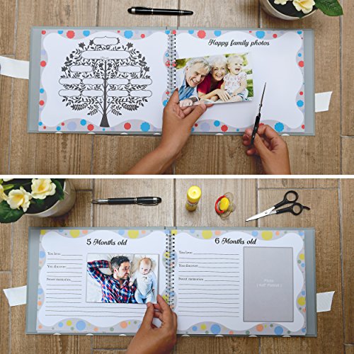 Little Baby Memory Book - Keepsake Journal with 12 Monthly Stickers - First 5 Years Scrapbook - Photo Album for Girls and Boys by Bebedim