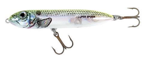 The Heddon Super Spook Jr. features the tough construction and good looks of the full-sized Super Spook in a smaller, but still explosive, fish catching design. Rugged line ties and hooks ensure the Super Spook Jr. will hold up to opportunistic charges from schooling fish. Realistic finishes provide the proper look for virtually any topwater fishing situation.Feature