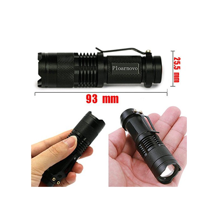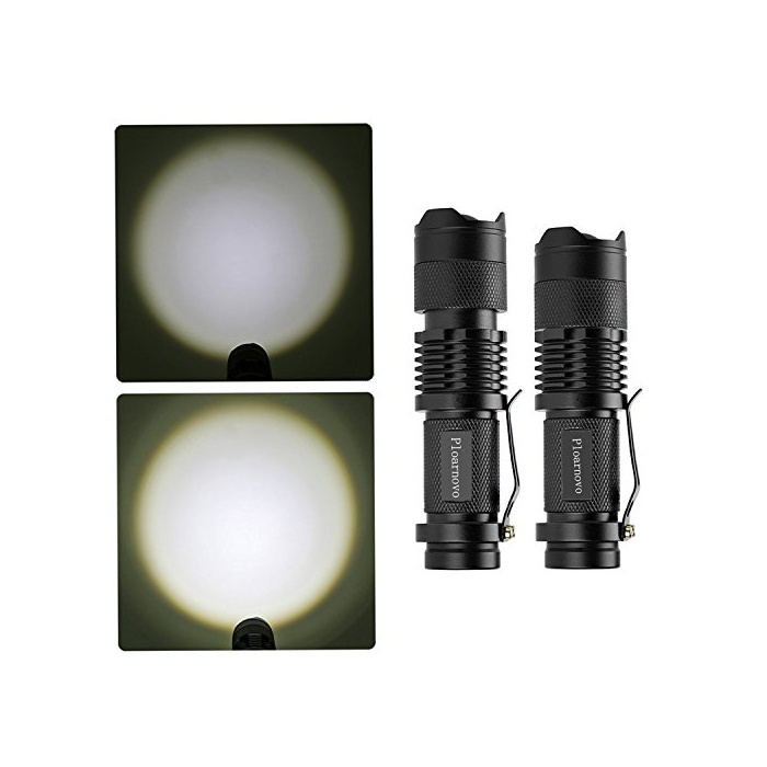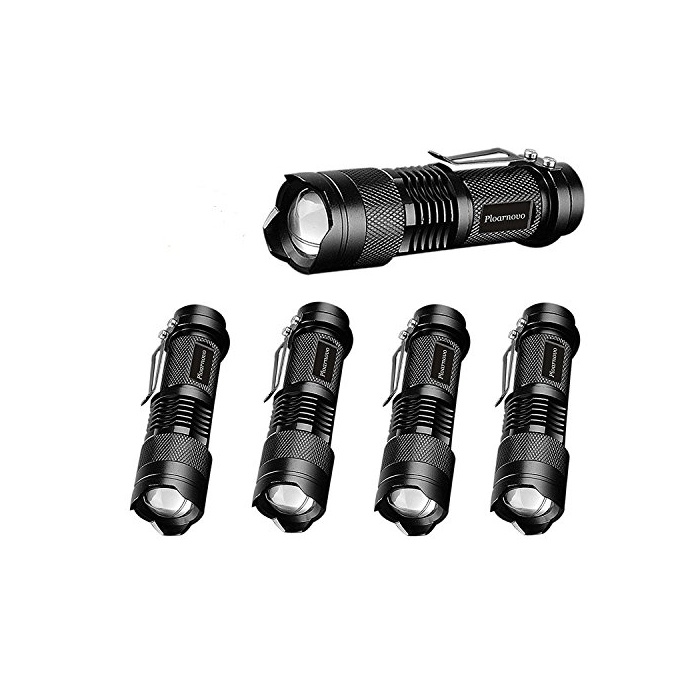Ploarnovo 소형초 경량 휴대형 미니 회중전등 오름 휘도LED 고성능 핸디 라이트 자전거LED라이트 줌 기능 첨부 와 방재 방수 5 개세트 들어감 (블랙)