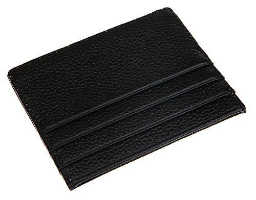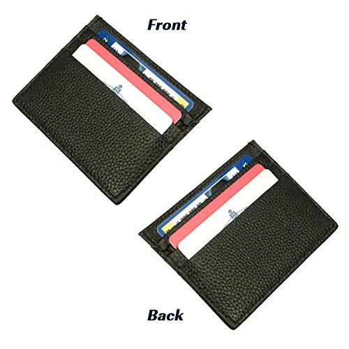 DEEZOMO Genuine Leather Unisex Card Case Wallet Slim Super Thin 6 Card Slots Compact Wallet - Black