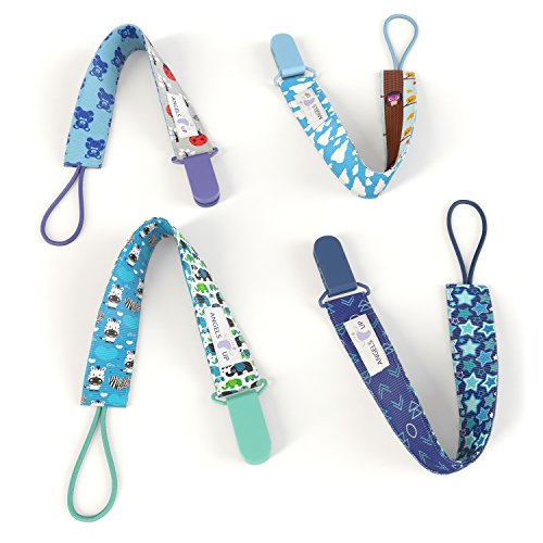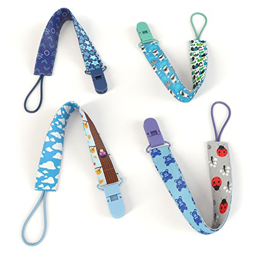 -. Title : Premium Quality Baby Pacifier Clip (4 Pack) for Boys and Girls! . Fun and Cute ,Extra Safe, Double-sided Baby Pacifier Leash Designs.