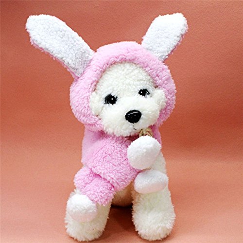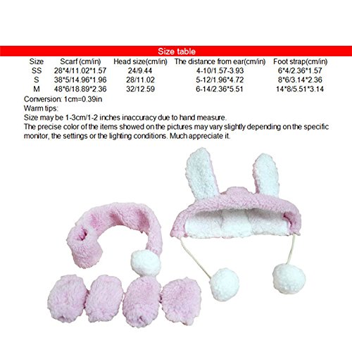 -. Feature : * SAFE AND NO STIMULATION:the use of high-quality soft velvet cotton, feel flexible and very warm, no stimulation of pet skin / * MULTIFUNCTIONAL: Pet dog and pet cat can wear, wear it, not only warm and comfortable, but also very cute and beautiful, leg sleeve can also prevent rain and snow weather, dirty pet legs hair / * LOVELY DESIGN: pink color, long ear rabbit shape, add infinite loveliness to your pet / * HUMANIZED DESIGN: Pet hat with ear hole, convenient for your pet to wear, and enhance the comfort of the hat / * BEST GIFT: This suit is very beautiful and practical, is the best gift for pets