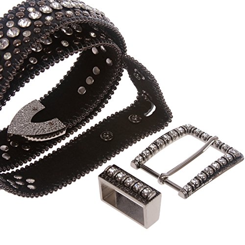 Product Description Riveted rhinestone studs for durability and long lasting. Hard-to-find, removable rectangular western rhinestone 3-piece buckle set, Assembled in USA 0
