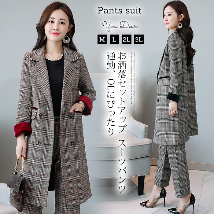 ■バランスの良いジャケットとパンツの組み合わせがレディーススーツならではの美しいラインを出してくれる♪■単品で着用いただいてもOK!ビジネスや冠婚葬祭でも大活躍する事もまちがいなし♪■使用シーン等:結婚式 パーティー 結婚パーティー 二次会 披露宴 お呼ばれ 普段使い 通学 通勤 OL ビジネス 入園式 入学式 ママ 卒園式 お食事会 成人式 卒業式 謝恩会 同窓会 演奏会 発表会 女子会 参観日 七五三 お宮参り★素材:ボリエステル★カラー:グレー、キャメル※お客様ご使用のPC環境により商品画像のカラーが多少異なる場合があります。仕入時期により多少デザインなど異なる場合があります。ご了承ください。★サイズ(CM):M:バスト90 肩幅36 袖丈56 着丈89 パンツ丈90L:バスト94 肩幅37 袖丈57 着丈90 パンツ丈91XL:バスト98 肩幅38 袖丈58 着丈91 パンツ丈92※サイズは人の手によって測っているため、1-3cmの誤差がある場合がございます。予めご了承下さいませ。