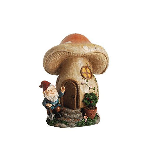 NORTHLIGHT 12" Forest Gnome with Mushroom House Outdoor Patio Garden Statue
