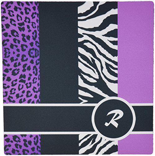 3dRose LLC 8 x 8 x 0.25 Inches Mouse Pad, Elegant Animal Print Monogram, Purple R (mp_35601_1)