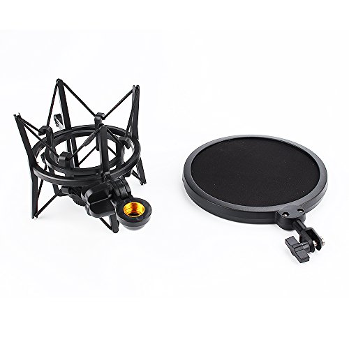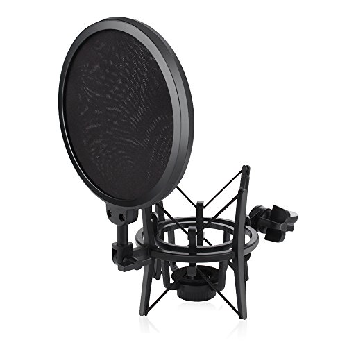 ARCHEER Microphone Shock Mount with Pop Filter Windscreen Shield for Studio Radio Broadcasting and Recording, Anti Vibration Suspension Metal Mic Mount, Black