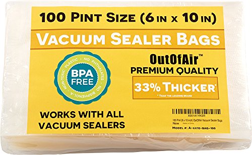 100 VACUUM SEALER BAGS: Includes 100 Pint (6-inches x 10-inches) size bags