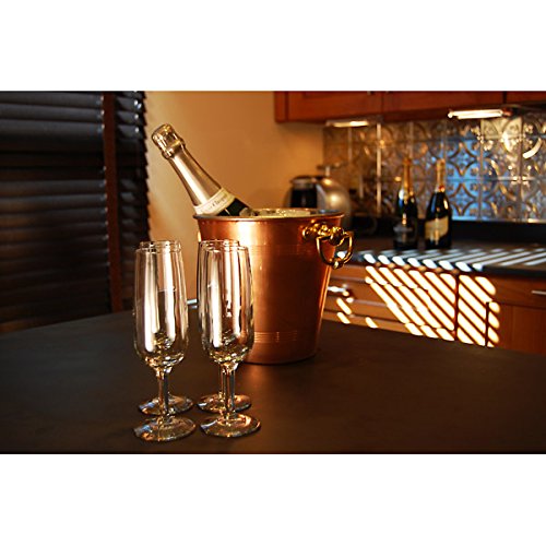 -. Feature : Polished copper finish. / Tin plate interior. / Brass handles. / Perfect for chilling wine and champagne in style! / Dimensions: 7 3/4""H x 8 1/4" Diameter.