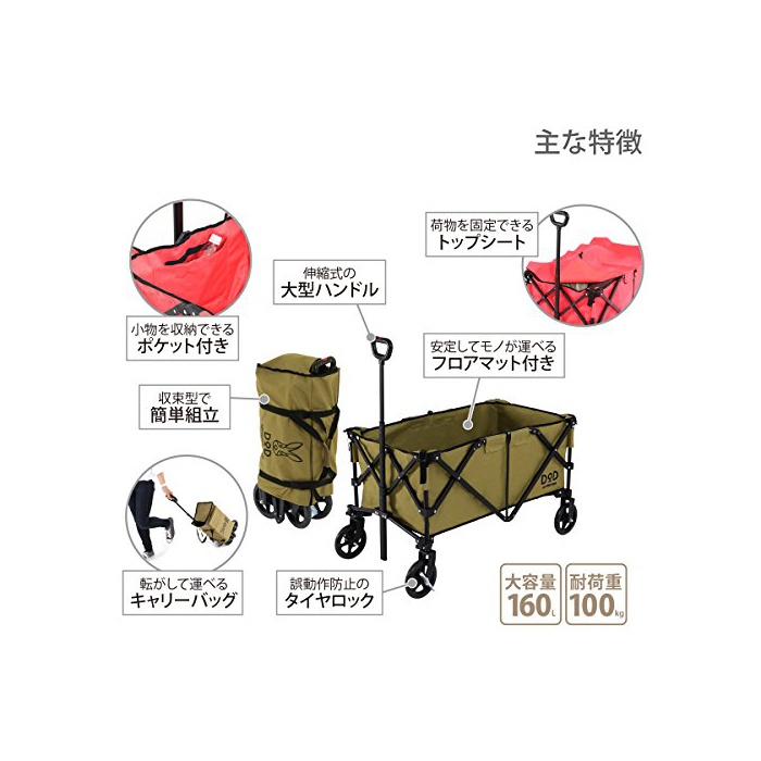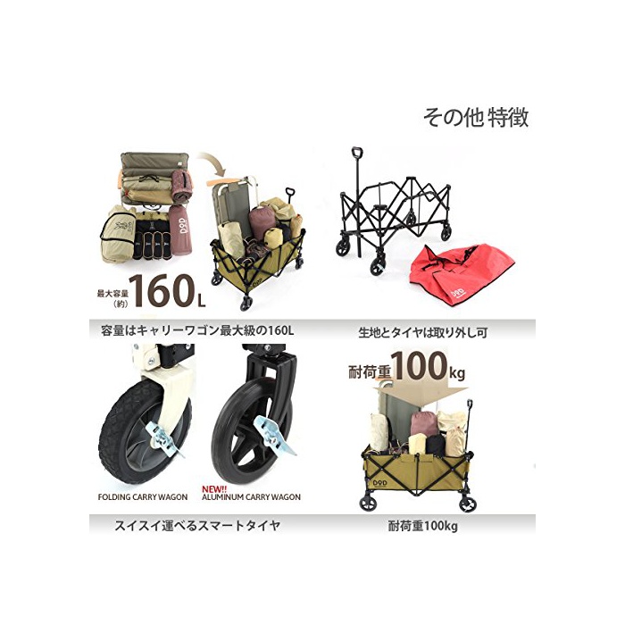 원본상품명: DOD(ディオディ) アルミキャリワゴン 【女性でもらくらく運べる】 C2-534-KH / C2-534-RD