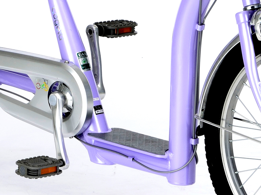 ご高齢者の体力と体型を考慮し、通常の自転車のノーマルギヤと比べてペダルの重さを軽減。クランクが短く、足の伸び縮みが少ないため、関節への負担が少なく、疲れにくい仕様です。