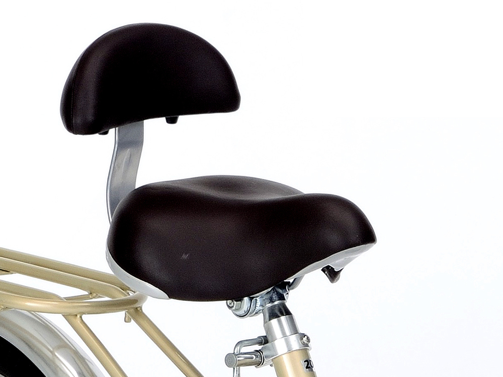 サドルに腰当をつけることで、効率よく足の力をペダルに伝えることができる。