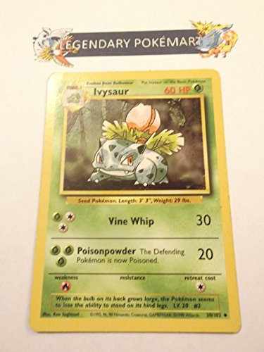 -. Brand : Wizards of the Coast -. EAN : 5053075181414 -. IsAdultProduct : 0 -. Label : Wizards Of The Coast -. Manufacturer : Wizards Of The Coast -. Model : NA -. MPN : 10 -. PackageQuantity : 1 -. PartNumber : 10 -. ProductGroup : Toy -. ProductTypeName : COLLECTIBLE_CARD -. Publisher : Wizards Of The Coast -. Studio : Wizards Of The Coast -. Title : Pokemon Base Set Uncommon Card #30/102 Ivysaur