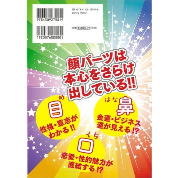 【商品基本情報】 商品名称:顔パーツ占い-3秒でズバリと性格がわかる! 著者/出版社:渡辺 孝行/渡辺 孝行 初版発行日:2015/04/30 サイズ:A5判 ページ数:79 ISBN/JAN:9784309275819/4528189537538