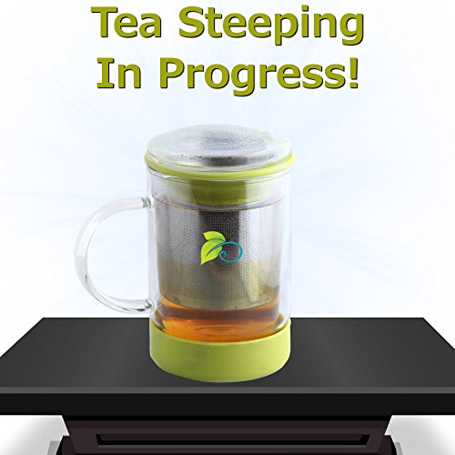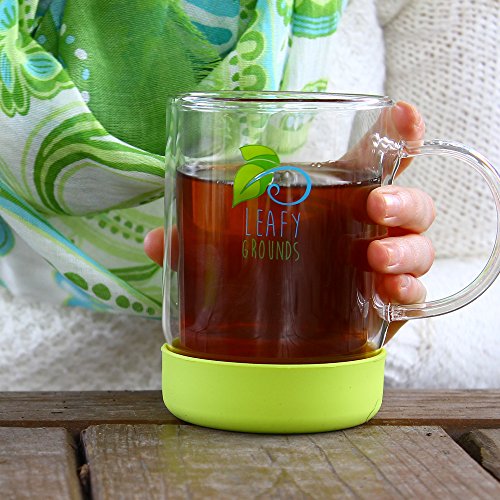 INSULATED BASE - As you wait for your tea to steep..you may want to head to your "relaxing space" and quietly settle in. With the silicone base on your new glass tea mug...go ahead and set it down on your furniture and not have to worry about leaving a "ring"