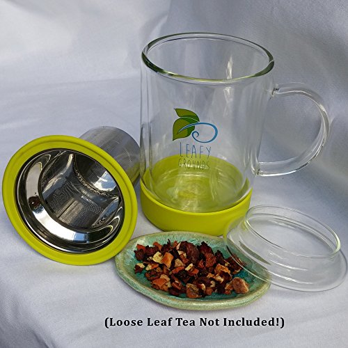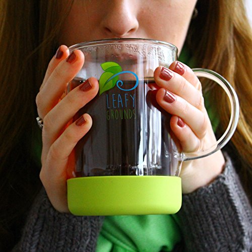 Leafy Grounds Loose Leaf Tea Infuser Mug - Double Wall Glass Tea Mug With Lid And High Grade Easy To Clean Stainless Steel Tea Infuser - The Best Complete Tea Steeping System For One!