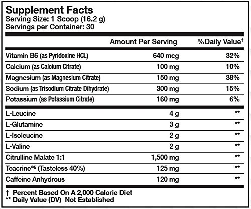 3g of L-Glutamine: L-Glutamine is one of the most well-known recovery inducing amino acids and helps reduce muscle soreness both during and after your intense workouts.