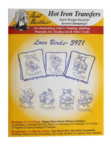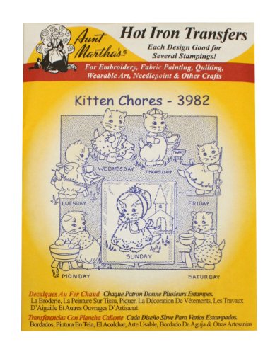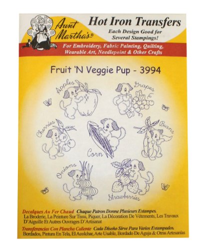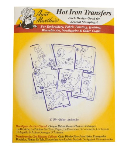 Aunt Martha's Iron On Transfer Patterns for Stitching, Embroidery or Fabric Painting, Cute Vintage Animal Patterns for Tea Towels or Quilting, Set of 5