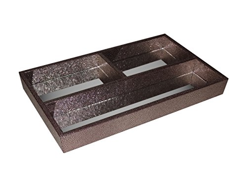 - Arriving in a rectangular shape with 3 compartments, each tray features center mirrors and a rose gold shagreen design and a handle-less design