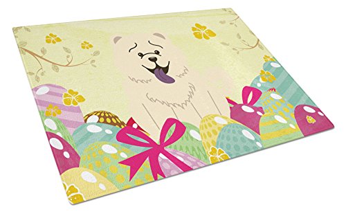 Caroline's Treasures Easter Eggs Chow White Glass Cutting Board Large, Multicolor