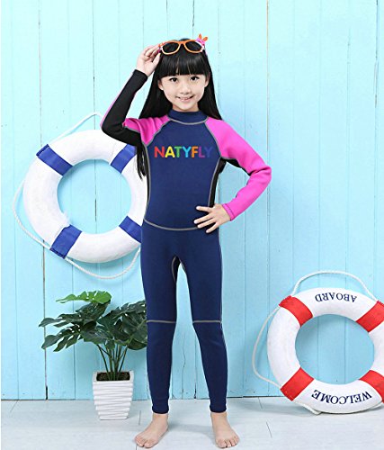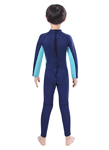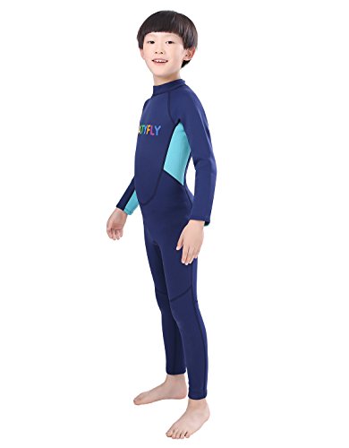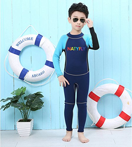 Neoprene Wetsuits for Kids Boys Girls Back Zipper One Piece Swimsuit UV Protection-Brand NatyFly (Blue-2MM-Long Sleeve, M-For Height 42”-47”)