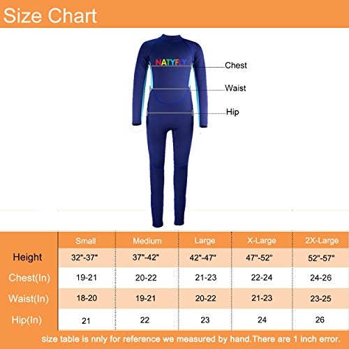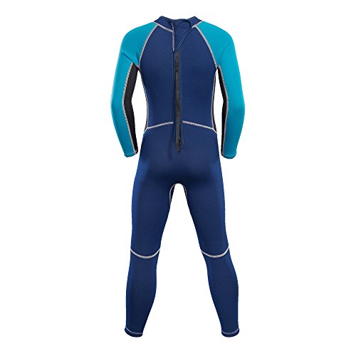 Neoprene Wetsuits for Kids Boys Girls Back Zipper One Piece Swimsuit UV Protection-Brand NatyFly (New Blue-2mm-Long Sleeve, L-For Height 42”-47”)