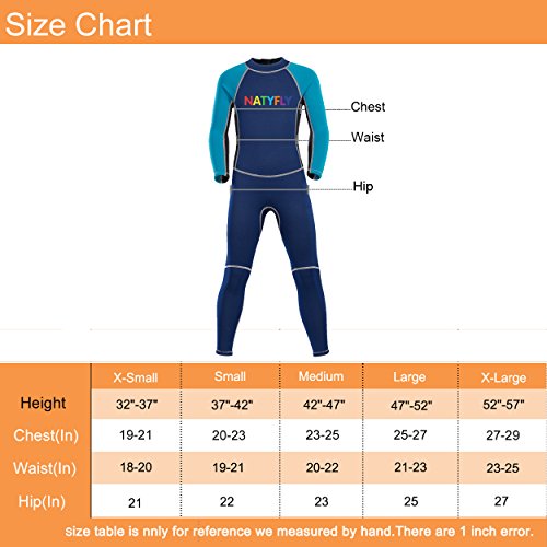 Neoprene Wetsuits for Kids Boys Girls Back Zipper One Piece Swimsuit UV Protection-Brand NatyFly (Blue-2MM-Long Sleeve, XS-For Height 32”-37”)
