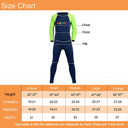 Neoprene Wetsuits for Kids Boys Girls Back Zipper One Piece Swimsuit UV Protection-Brand NatyFly (Green-2MM-Long Sleeve, S-For Height 37”-42”)