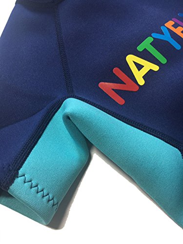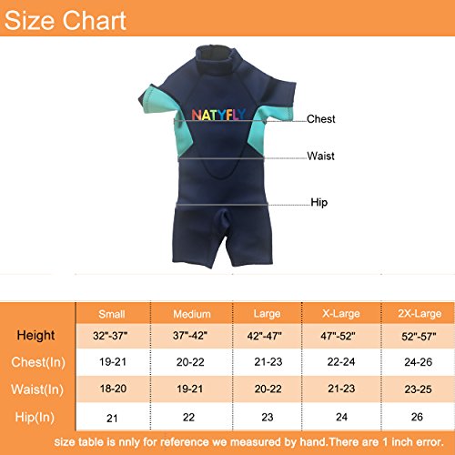 Neoprene Wetsuits for Kids Boys Girls Back Zipper One Piece Swimsuit UV Protection-Brand NatyFly (New Blue-2mm-Short Sleeve, New S-For Height 32”-37”)