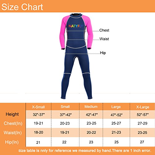 Neoprene Wetsuits for Kids Boys Girls Back Zipper One Piece Swimsuit UV Protection-Brand NatyFly (Pink-2MM-Long Sleeve, M-For Height 42”-47”)