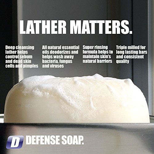 Defense Soap provides full strength antifungal, antiviral, and antibacterial natural essential oils. Defense Soap also provides a broad spectrum of benefits derived from Tea Tee Oil and Eucalyptus Oils, clinically proven natural ingredients effective at helping wash away bacteria, viruses, and fungus. Proven in the world of contact sports, to efficiently removes dirt, grime, gym crud, sweat, smog, allergens, grunge, and built up oils. Defense Soap is triple milled for quality, consistency and longevity, built for a high density lather, deeply cleansing the pores. With superior rinsing action, Defense Soap restores the skin’s natural barrier while helping control the production of sebum and dead skin cells. Perfect for active lifestyles, supporting proper hygiene routines, and recommended after workouts. Defense’s natural deodorizing Ingredients helps wash away odor causing bacteria. Defense Soap is hypo allergenic, naturally free and clear, and formulated for sensitive skin, with no fragrances, dyes, cosmetics, petrochemical compounds, triclosan, alcohol or sodium lauryl sulfate. Why Australian Tea Tree Oil and Eucalyptus Oil? Australian tea tree oil has a broad-spectrum of antibacterial, antiviral, and anti fungal activity. Australian tea tree oil and eucalyptus oils have been shown to be effective against all three categories of infectious organisms: bacteria, fungus and viruses. Australian tea tree oil is an effective natural deodorizer and cleaner. Australian tea tree oil has been approved by European government authorities and included in the European Pharmacopoeia. Claims regarding the medical properties of tea tree oil are not sanctioned by the US authorities or the FDA.Feature