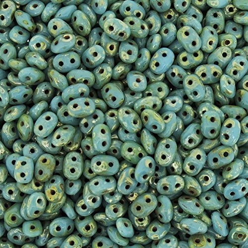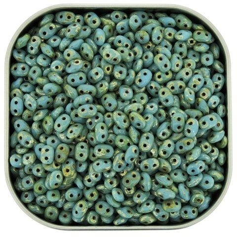 Czech Two-Hole Seed Beads 5.5x2.5mm SuperDuo Turquoise Blue Picasso 24gram