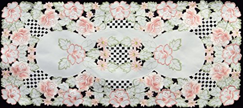 -. Title : Creative Linens Embroidered Rose Daisy Floral Cutwork Table Runner 15x34" Ivory SP.R.Ing
