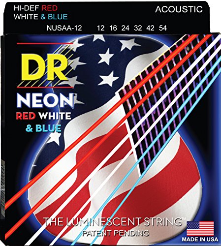 Studio : DR Strings Publisher : DR Strings Binding : Electronics Product Description DR NEON Red, White and Blue Strings are super bright color-coated strings that sound clear, bright and musical and are an excellent idea for those wanting to add color to their rig. Super bright in daylight and under stage lighting, DR NEON Red, White and Blue Strings are 100% black light active and glow strongly under UV lighting. These strings will last as long as a coated string should (three to four times as long as uncoated strings) while maintaining tone that is not only good, but better than top-quality uncoated strings. Proudly Made in the USA. 0