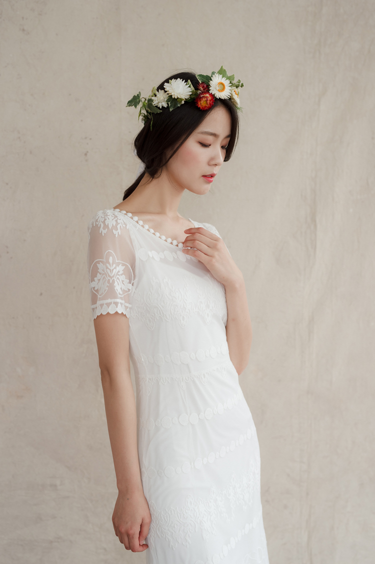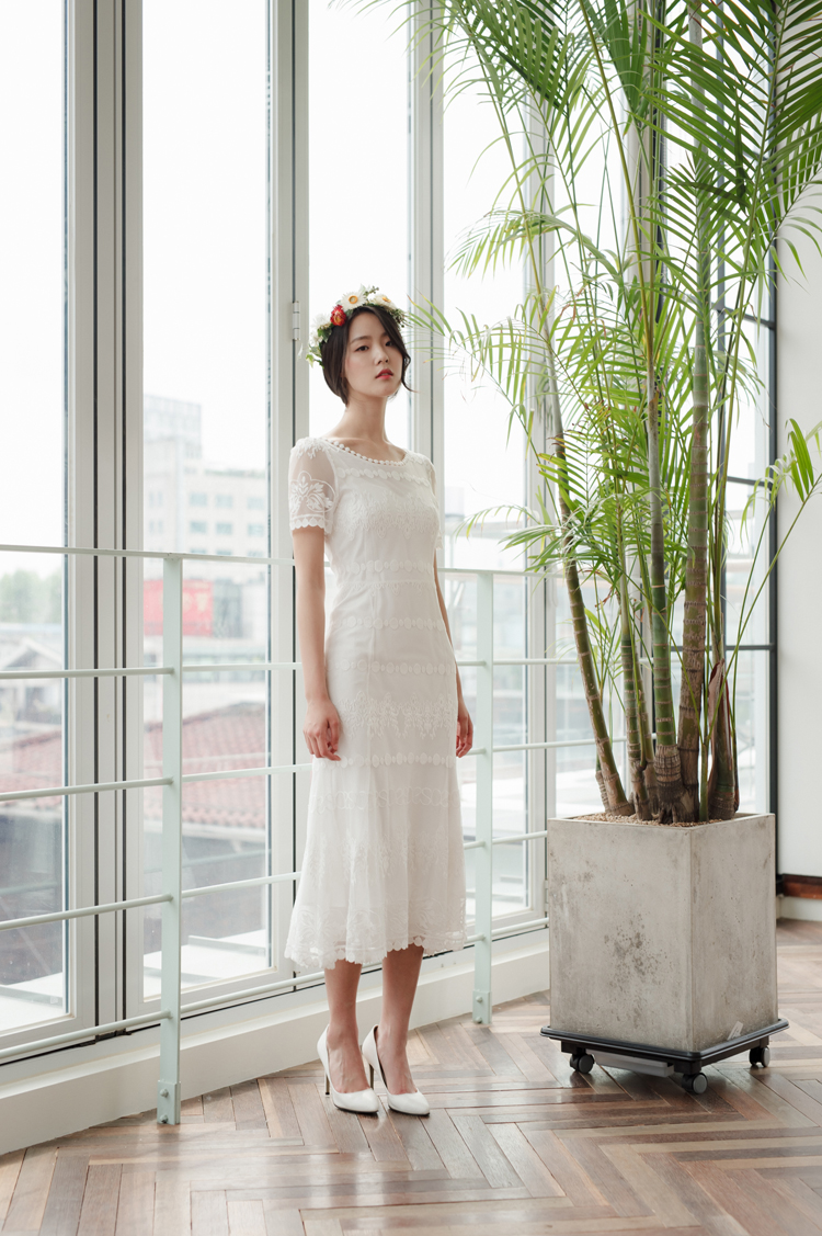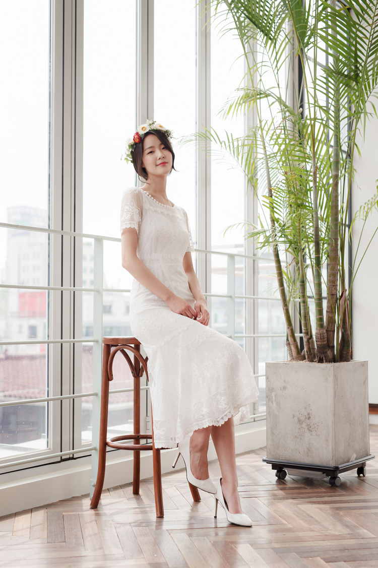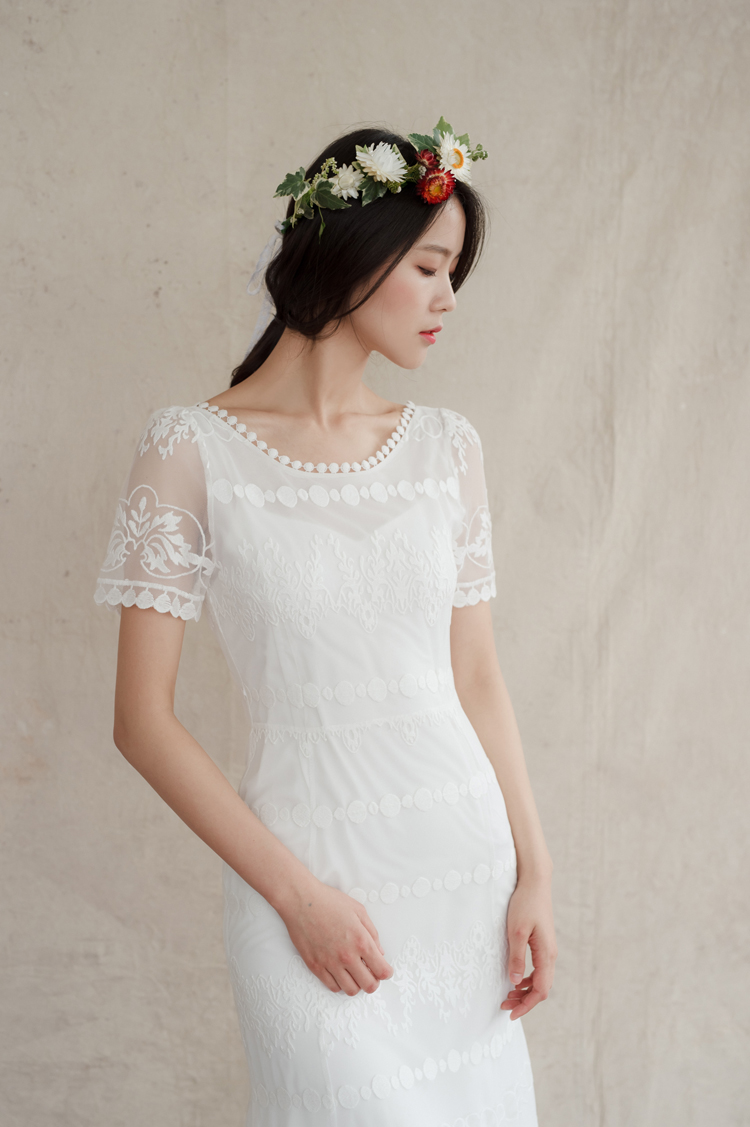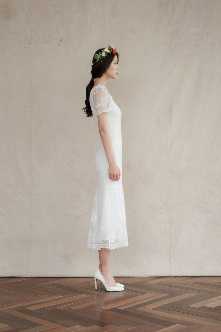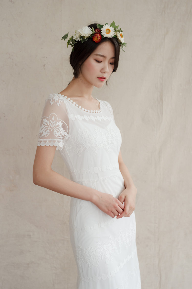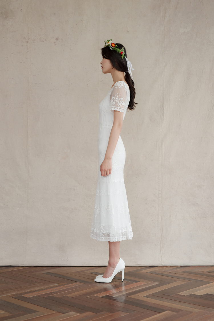 아그네스 드레스는 몸을 따라 유연하게 흐르는 실루엣으로 여성미를 살렸습니다.