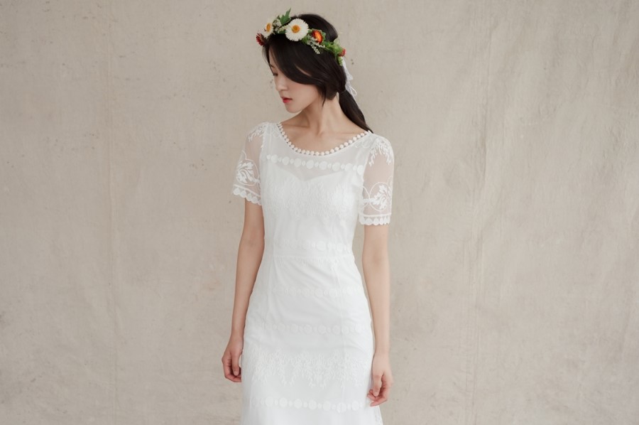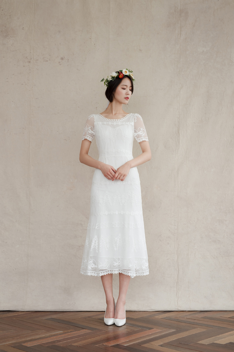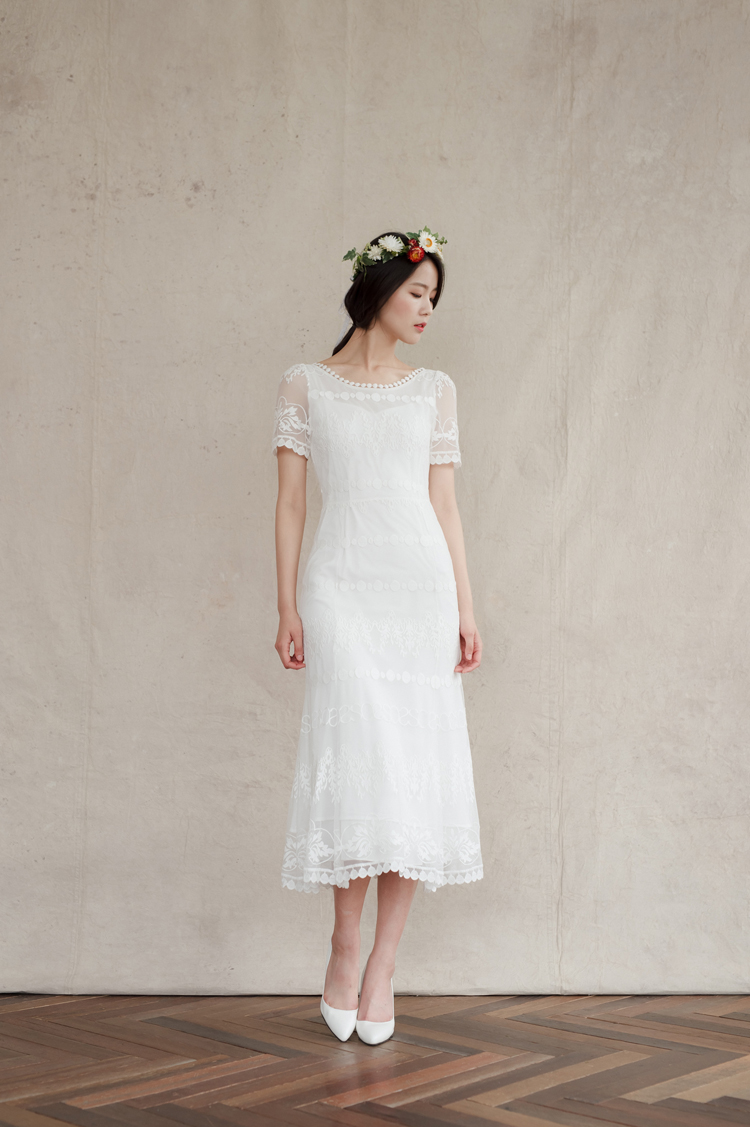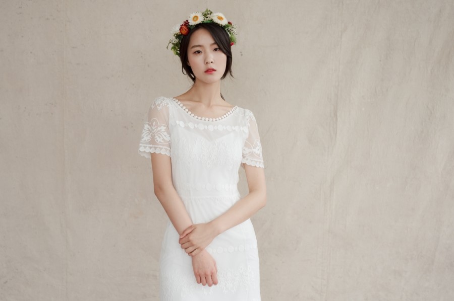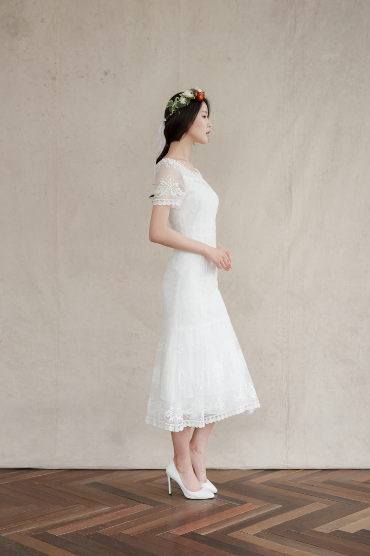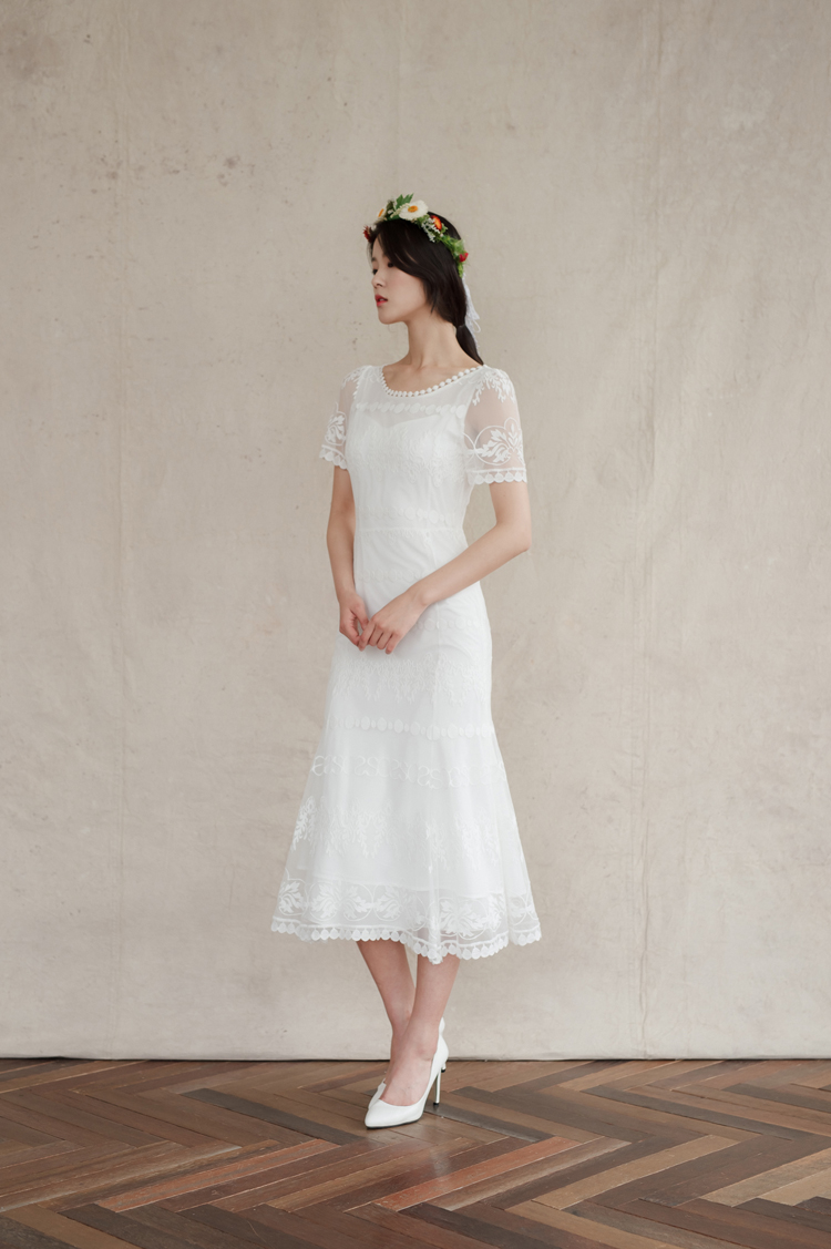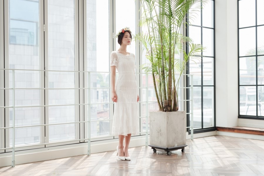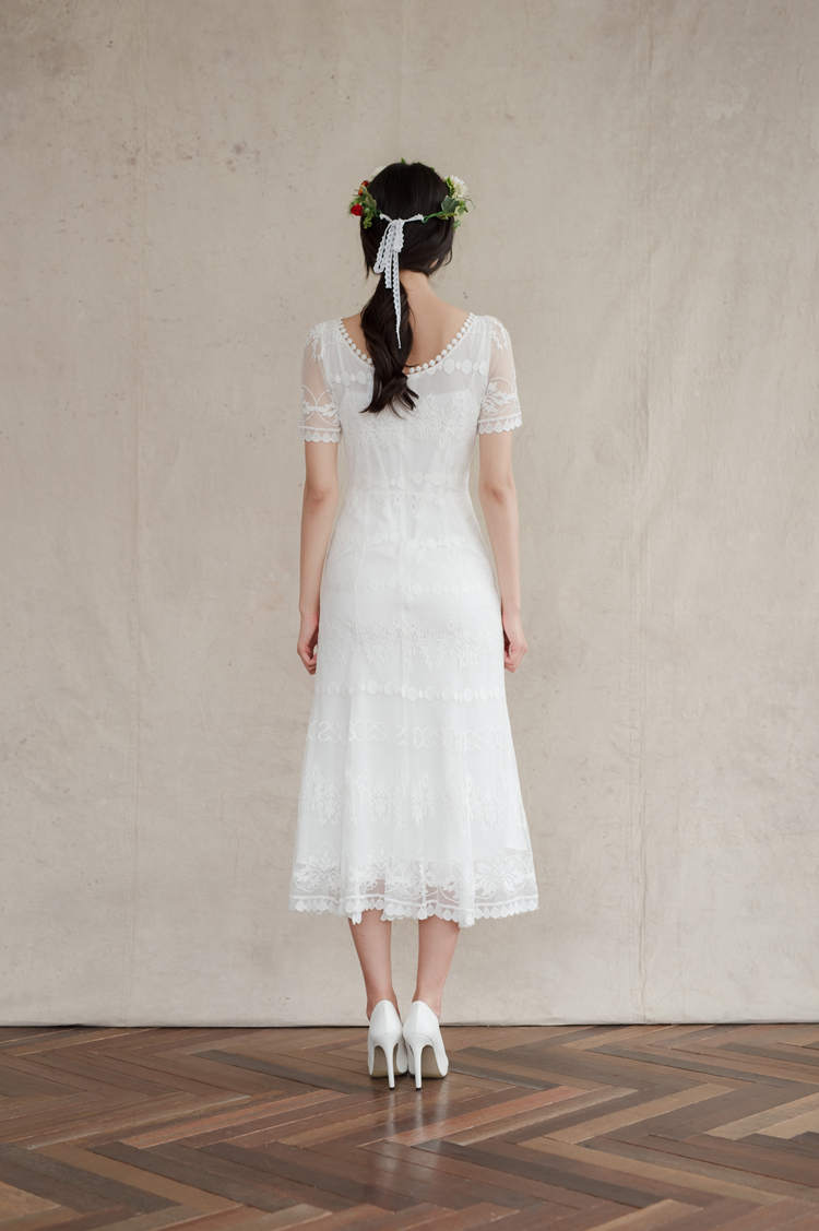 아그네스 드레스는 몸을 따라 유연하게 흐르는 실루엣으로 여성미를 살렸습니다.