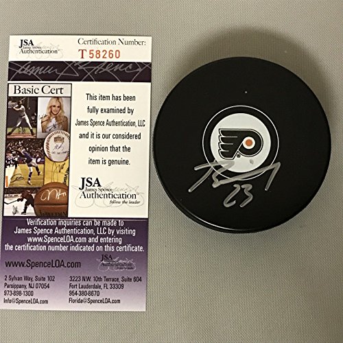 Autographed/Signed Brandon Manning Philadelphia Flyers Logo Hockey Puck JSA COA