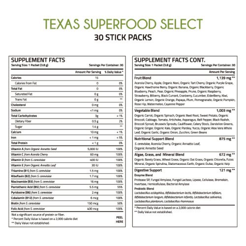 - Title : NuPlexa "Texas Superfood Select", Whole Food Nutrition - 30 Powder Stick Packs. Complete wholefood daily nutrition containing 100% daily value of Vitamins A, Vitamin C, Vitamin D, and Vitamin E. 100% natural - no artificial color, flavors, or additives.