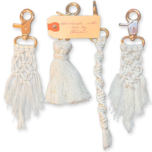 Handmade Macrame Keychain by Cedar and Flame | Knot Tassel Tapestry | 100% Cotton on Metal Latch | 1 or 4 Pack (Stepped Tapestry)