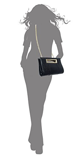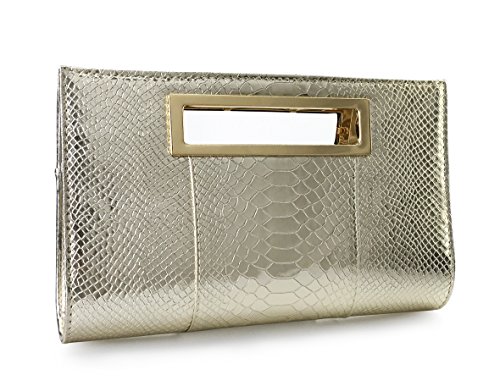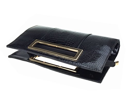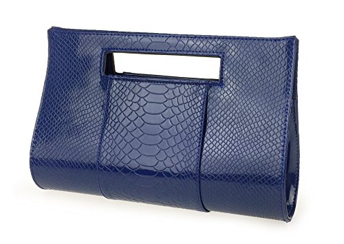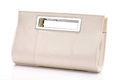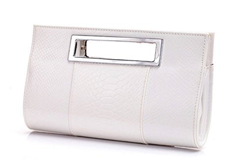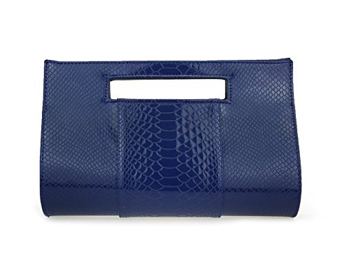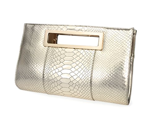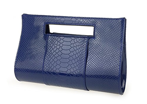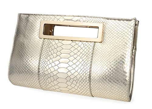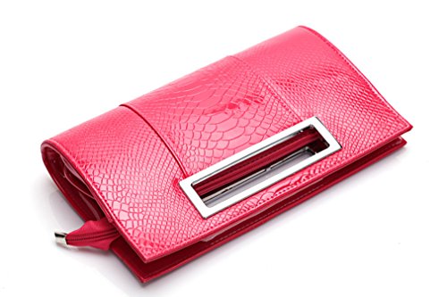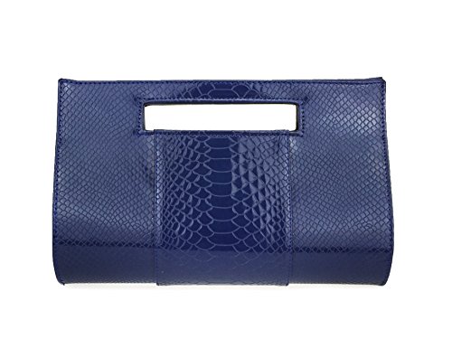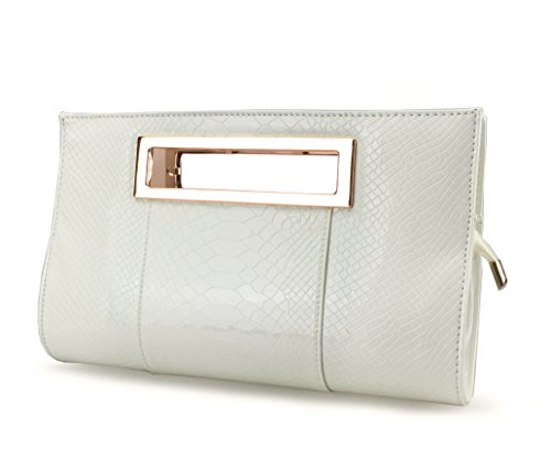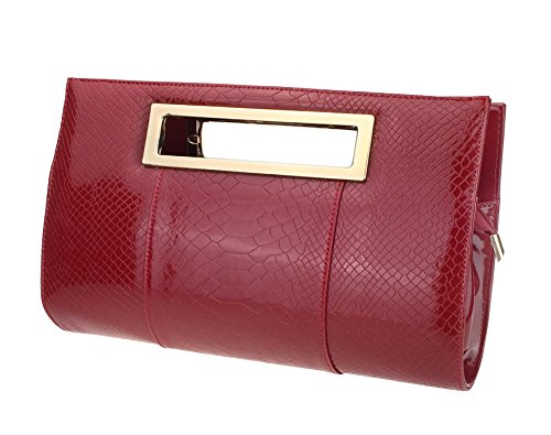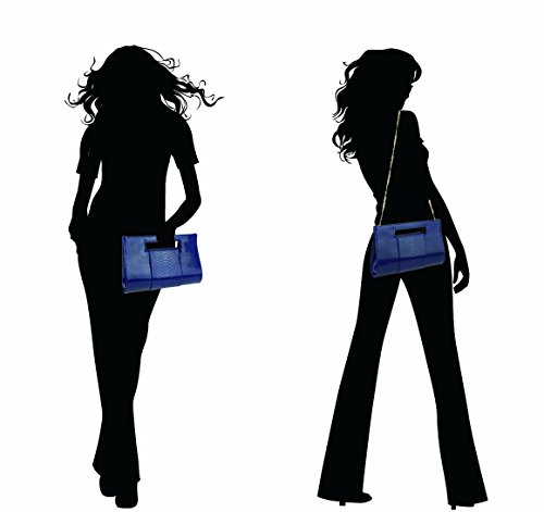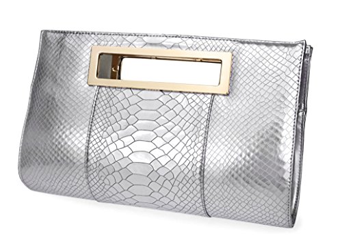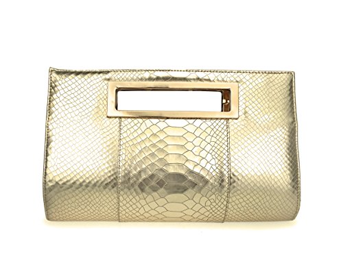 You will find this clutch rather intriguing. The cut-out handle is unique. It really stands out, yet it is very very chic.You will also like the Crocodile Pattern with silver metal. Plus the divided interior is great for keeping your stuff from rattling around inside. And there is an optional shoulder strap. This clutch would look good with the right outfit. Something simple and understated, not too dressy. Perhaps a favorite little black dress will do the trick!