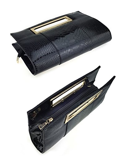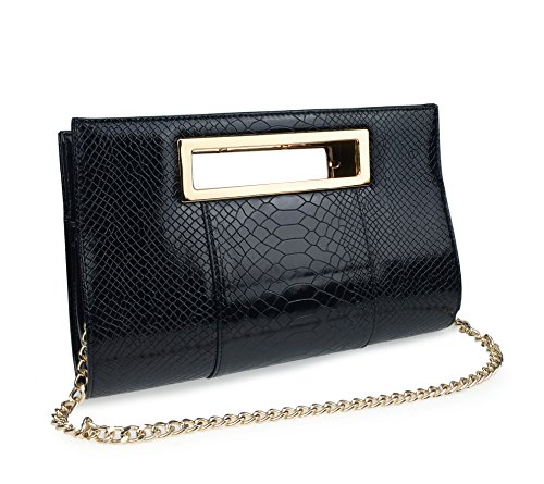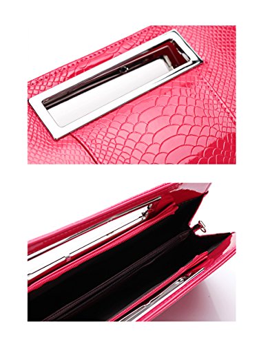 Product Description Hoxis Classic Crocodile Pattern Faux Patent Leather Cut it out Clutch with Shoulder Strap Womens Handbag