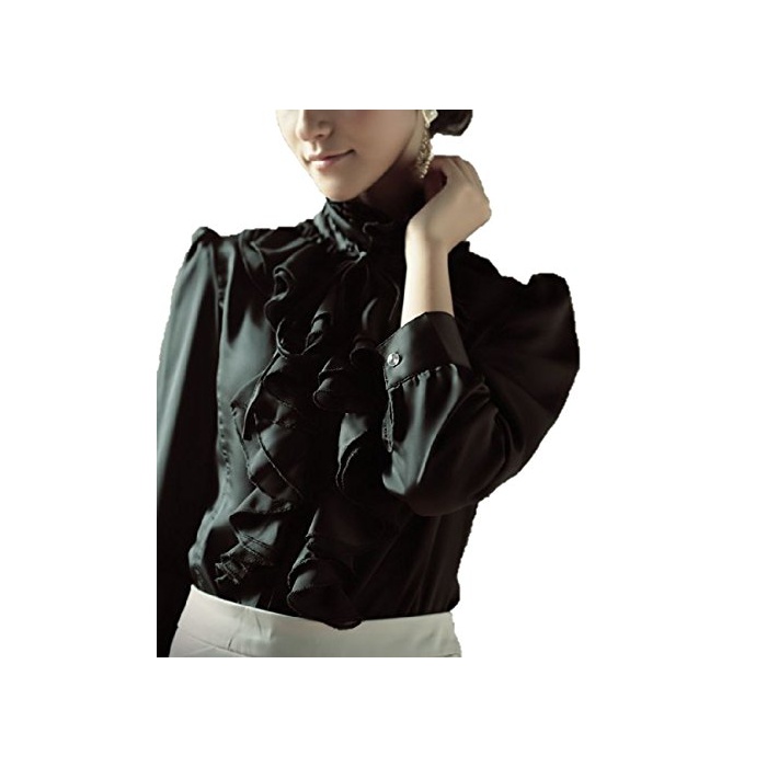 원본상품명: 品溢れる フリルブラウス リボン付き 詰襟 ブラック ホワイト G061 (M, ブラック)