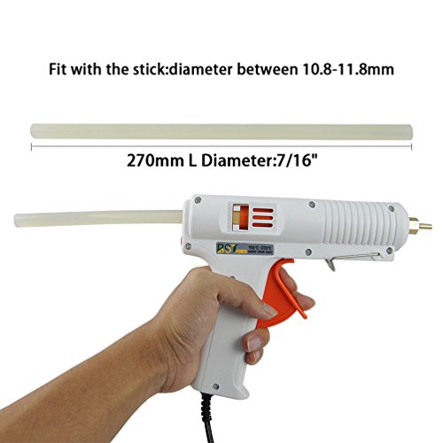 【Heats Up Quickly】---3-5 min warm up time, an indicator light to let you know it is at the set temp. Standard glue sticks needs 7/16" diameter (between 10.8mm-11.8mm) 10" length, 15-20g/min melting out.