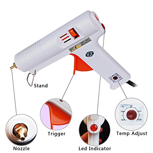 【Adjustable Temperature Control】---Temperature ranges widely from 100°C to 220°C (212°F - 428°F) which makes the glue gun good for both hot and cold applications. Perfect for crafts, home quick repair, office and school DIY projects.