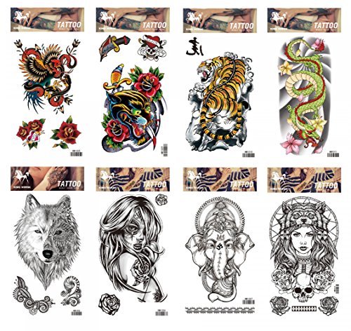 GGSELL GGSELL tattoo 8pcs mixes temporary tattoos in one packages,including snake,flowers,tiger,dragon,wolf,elephant and women temporary tattoos